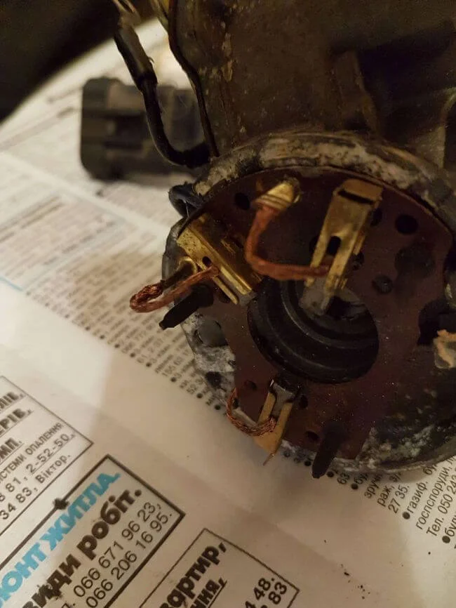 Важно Не повторяйте моих ошибок. От моторчика идёт круглая штука с пазами для контактов. Важно запомнить расположение.