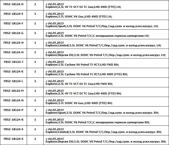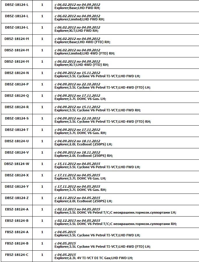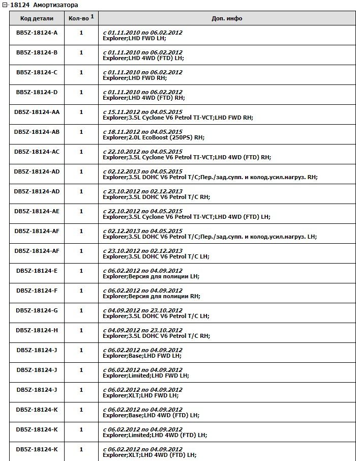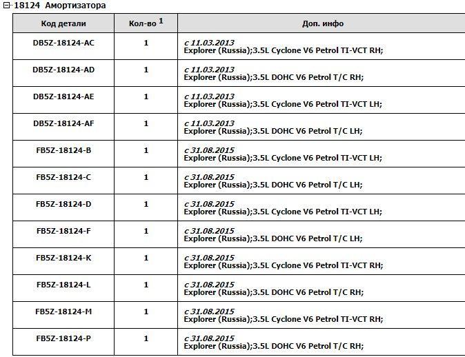 Какая маркировка переднего амортизатора Форд Эксплорер 5?