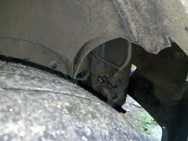 Что находится между правым передним колесом и двигателем, прикручено на двух болтах? К нему подходит проводок в кембрике и второй провод или трубка в гофре