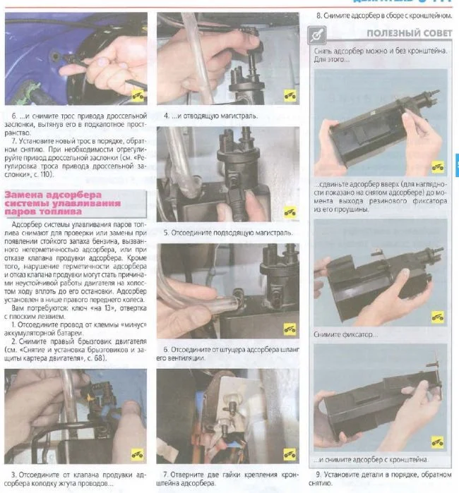 Как заменить адсорбер, описано ниже.