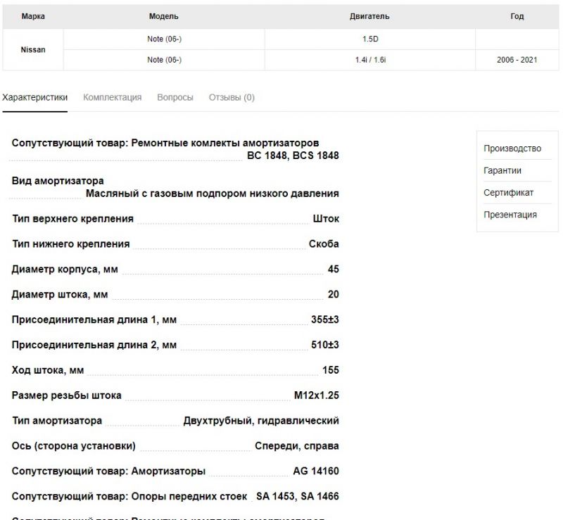 Какой диаметр штока передней стойки амортизатора Ниссан Ноут 2
