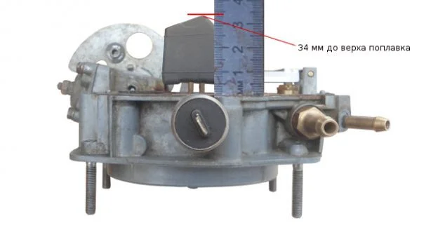 Вот правильный вариант проверки уровня в карбюраторе «Солекс» (и запомните цифры: 25-26мм)