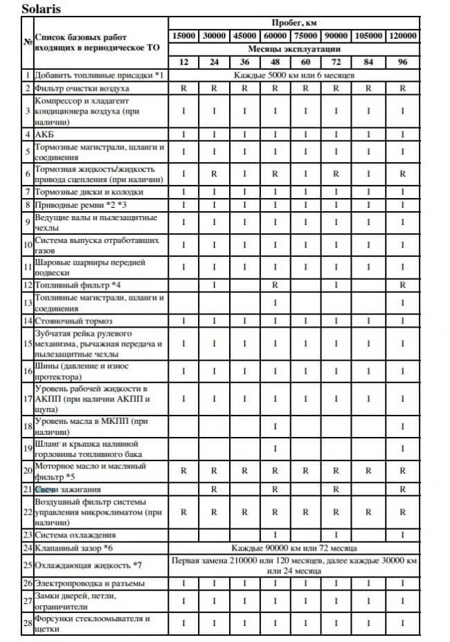 Регламент ТО Хендай Солярис