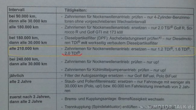 Судя по немецкому мануалу надо менять ремень ГРМ через 210 т. км