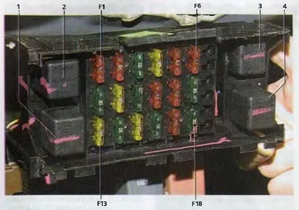 В салоне, в монтажном блоке, установленном под защитной крышкой в панели приборов, слева от рулевой колонки.