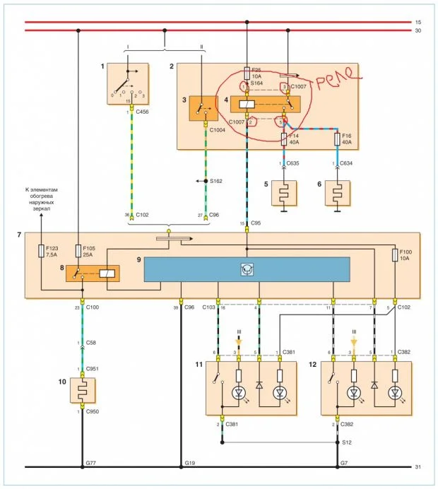 Перестал работать эл. обогрев лобового стекла и зеркал заднего вида. Предохранители все проверил, все нормально, клавиша включение, включается.