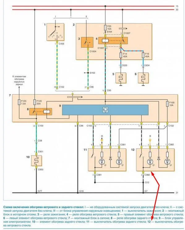 Да, обогрев заднего стекла и зеркал работает, т.е. остальное вроде все работает, хорошо я вот в салоне еще не все предохранители проверил, сегодня проверю, спасибо за схему электроснабжения!