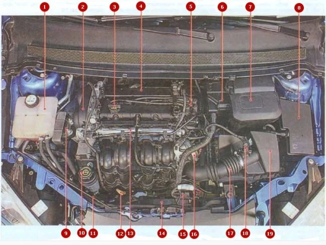 Схема подкапотного пространства Форд Фокус 2. Сбросьте, если не затруднит.