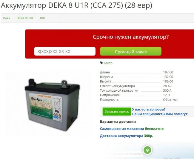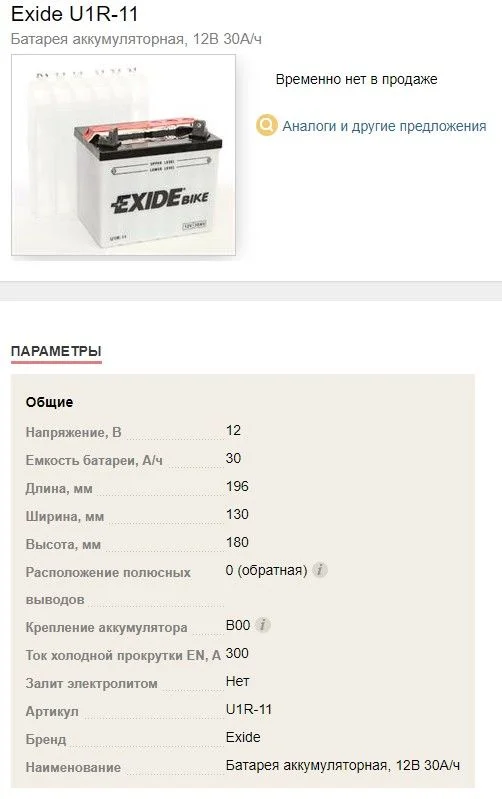 Нужен аккумулятор для мини трактора CRAFTSMAN. 35 А/час, мин./ССА 280, размер корпуса U1R