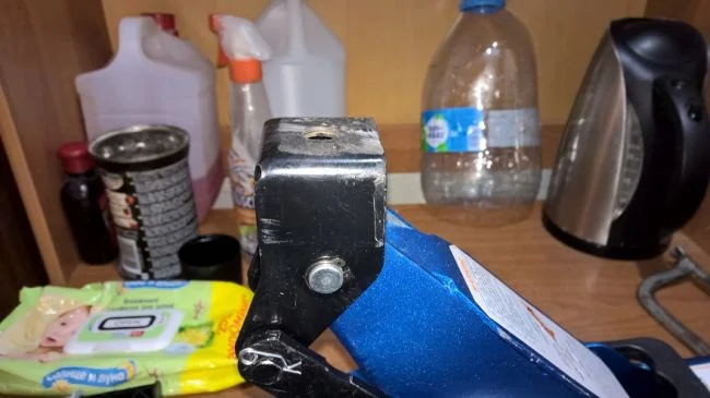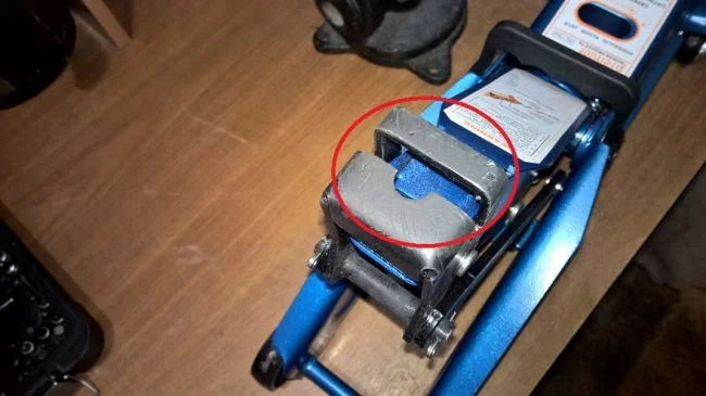 Для удобства использования такого домкрата можно самостоятельно провести его переделку. Для начала при помощи болгарки срезается верхняя шляпа (показано ниже на фото).