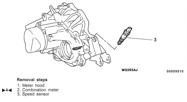 Подскажи пожалуйста, где установлен датчик скорости на Mitsubishi Space Star, 2002 год?