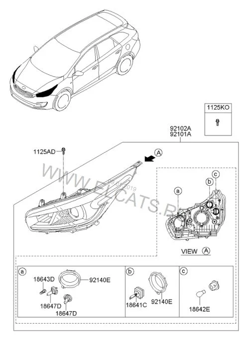 Где находиться правая лампа бокового света Киа Сид 2?