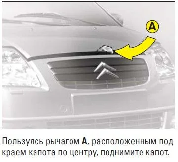 Как открыть капот Ситроен С2?