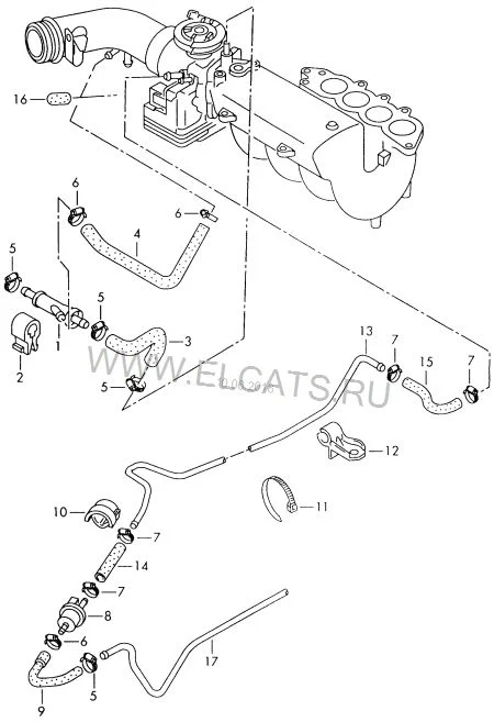 Куда крепится тонкий резиновый шланг выходящий из впускного коллектора?