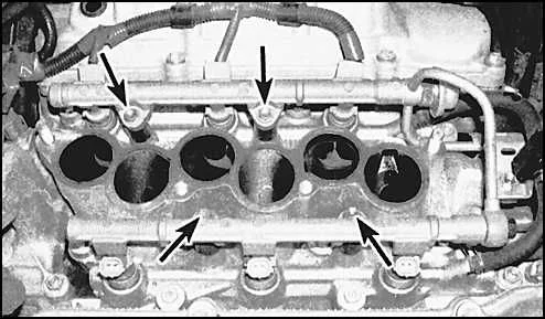 Подтягивается топливная рампа болтами (там на рампе конечно же и стоят форсунки).