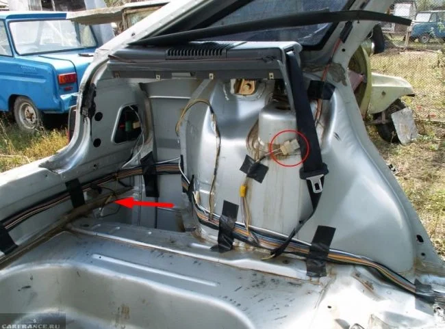 Да он идет от туда где стрелка, но до стойки его длины точно не хватит, он торчит из кузова см 15 где то так