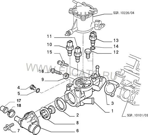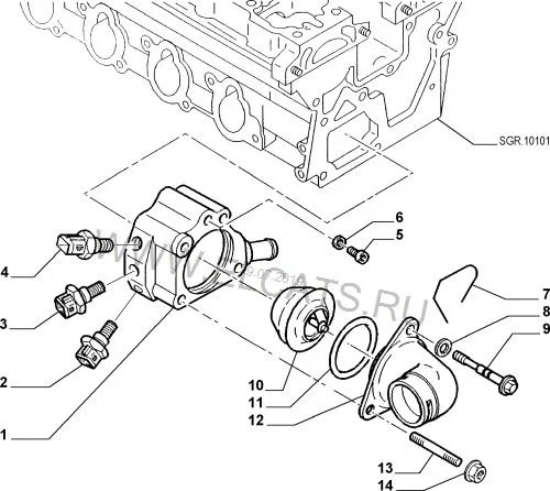 Вот схемы моторов Fiat Ulysse, и прокладки под термостатом везде