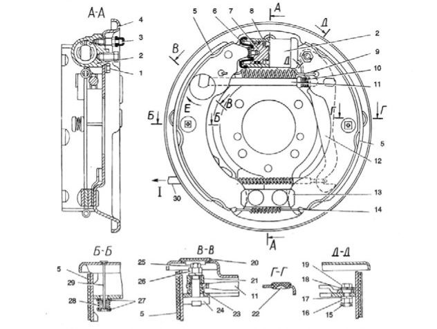 - по такому же принципу отрегулируйте разжимное звено (“11” на схеме 2) другого колеса, чтобы оно стало в такое же положение;