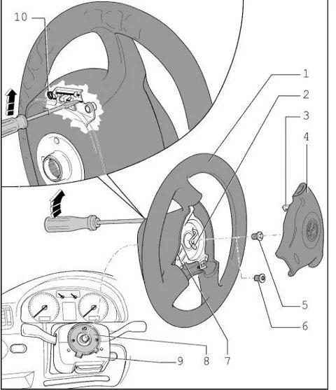 Как снять подушку безопасности с руля в Фольксваген Поло?