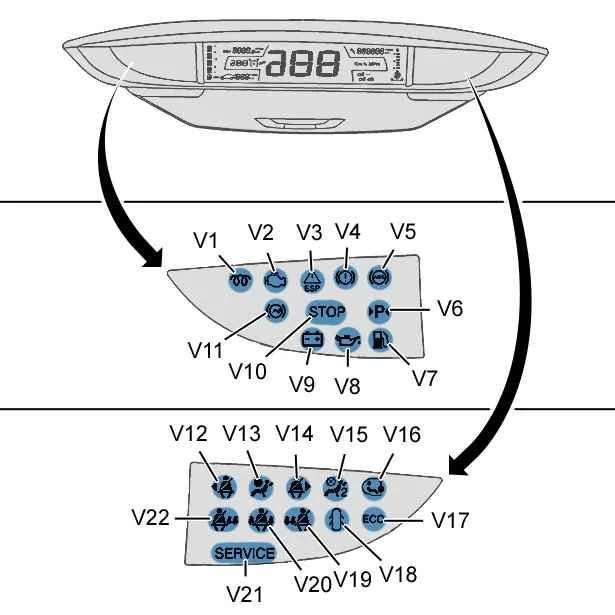 Значок V15 горит? V15 — Отключена подушка безопасности переднего пассажира. Возможно проблема в самом переключателе подушки безопасности. Желательно провести диагностику сканером Лекция и проверить наличие ошибок в памяти ЭБУ.