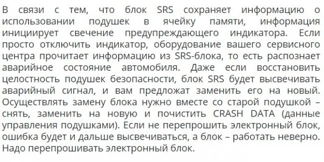 Нужно будет удалить краш ошибку и может потребоваться перепрошивка или замена блока SRS (блок подушек безопасности). Если в ремнях сработали преднатяжители, то их тоже менять.