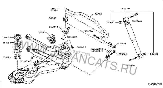 Стойка стабилизатора задняя левая — Nissan 55619-JD01A (часто берут фирмы Mapco, так же продаются отдельно сайлентблоки из аналогов).