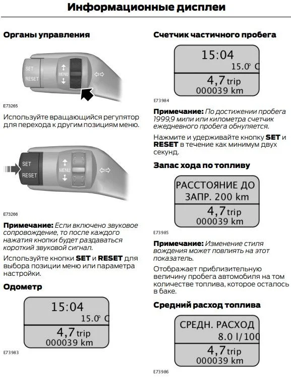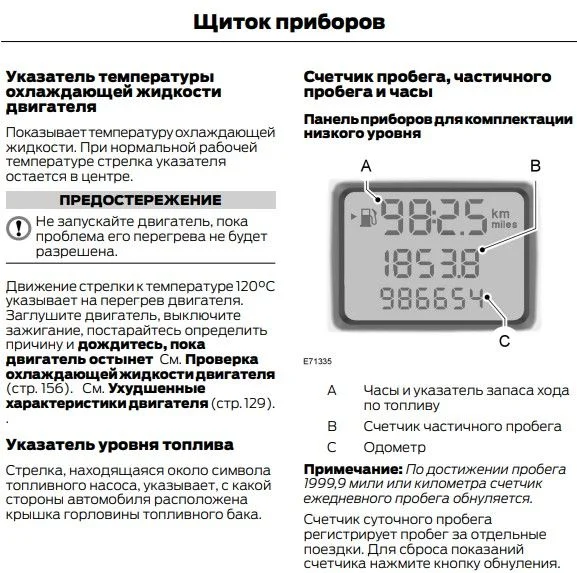 Щиток приборов такой, как указан ниже? Должен быть общий пробег и суточный, возможно щиток приборов не корректно работает.