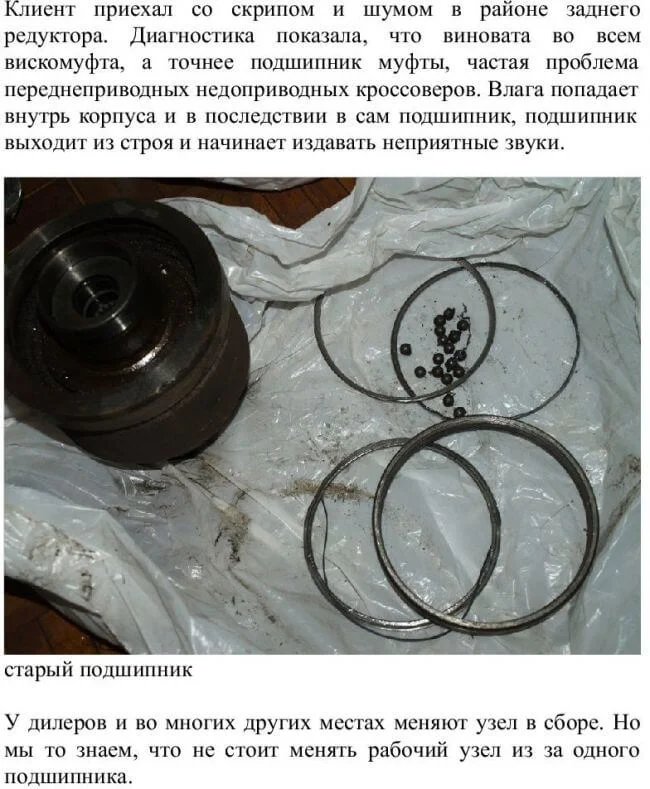 Специалист должен проверить все детали на износ. Ведь ему после ремонта нужно будет отчитываться за проделанную работу. Возможно только один подшипник поменяет.