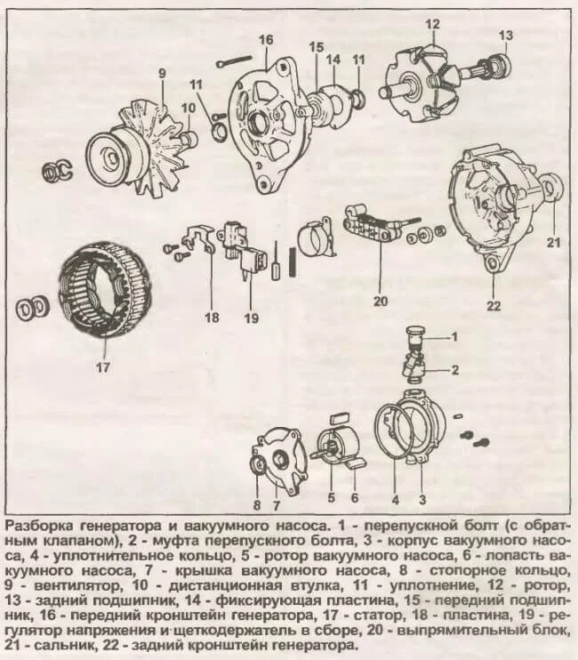 Еще проверьте крыльчатку, так же шум может быть от вакуумного насоса (при наличии). Схемы генераторов на данный автомобиль. Так же вам пригодится видео и отзыв по замене подшипников тут.