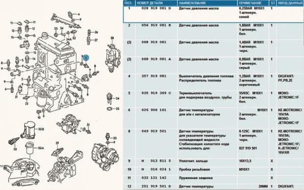 Какой номер датчика температуры Фольксваген Туран?