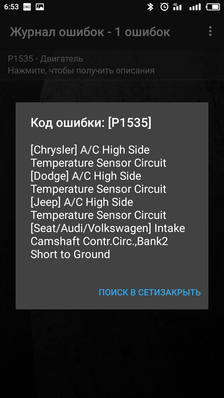 Вчера заменил главное реле, сбросил ошибки, но после обновления р1535 так и осталась. В общем сканер показывает вот что: