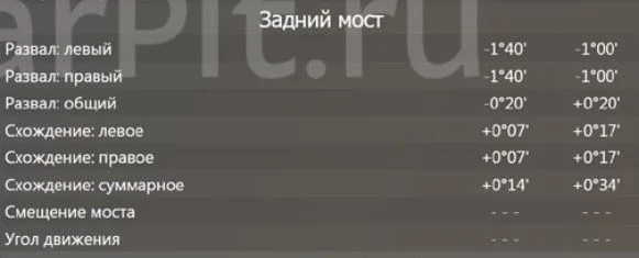 Вот данные по углам установки колес