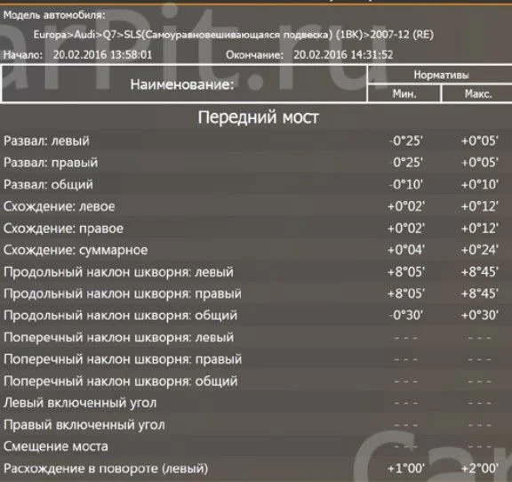 Какая норма поперечного наклона швкорня Ауди Ку7?