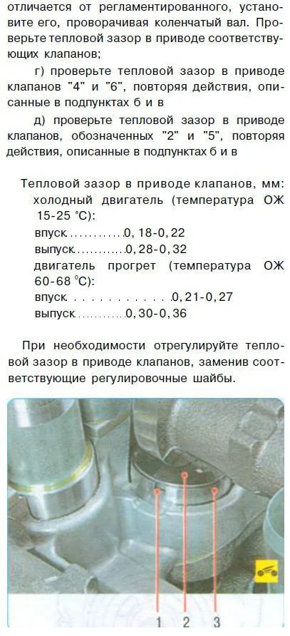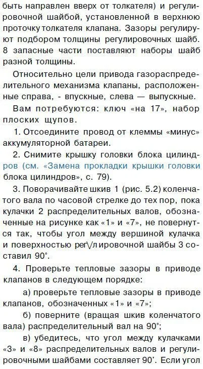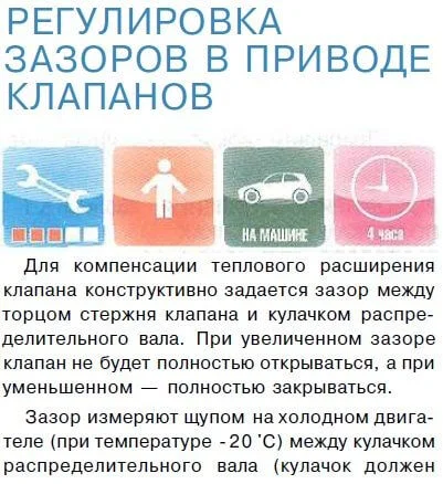 Процедура регулировки клапанов взята из руководства по ремонту.