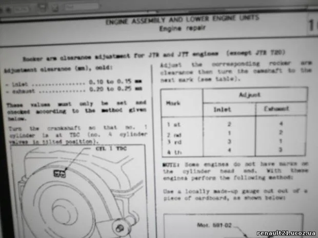 Здравствуйте! Подскажите пожалуйста порядок регулировки зазоров клапанов на Рено 21, дизель. Спасибо за ответ.