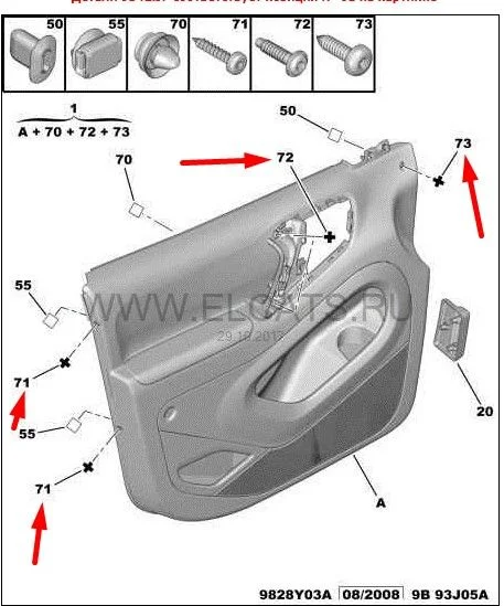 Как снять обшивку двери Пежо Партнер 2?