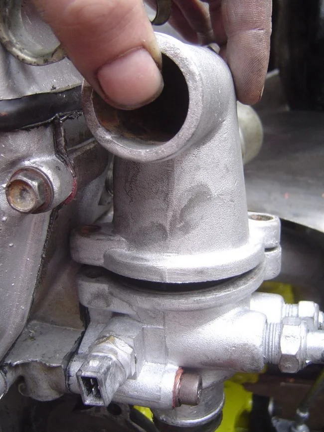 Двигатель явно не УМЗ, там корпус термостата к ГБЦ крепится. И не ЗМЗ, там корпус тоже к ГБЦ крепится. Возможно это Крайслер. Может Штайер. А может УЗЕТ. Или что ещё туда можно засунуть. Прикладывайте фото чтоб не гадать. И двигатель указывайте.