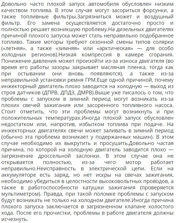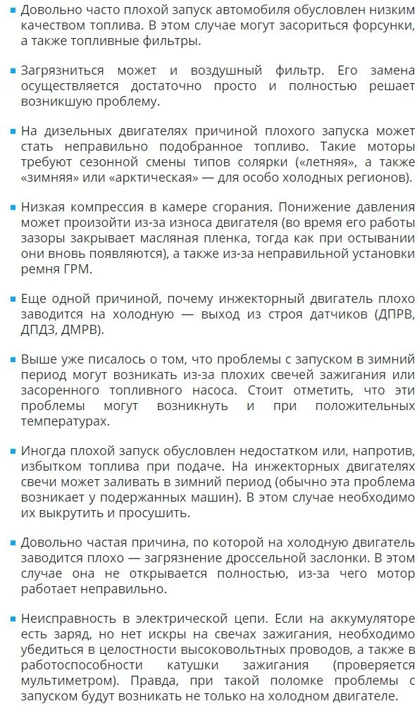 После ночи холодный двигатель с трудом запускается потом в течения дня запускается без проблем.