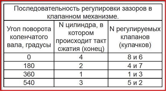 И вот на всякий случай, таблица последовательности регулировки клапанов: