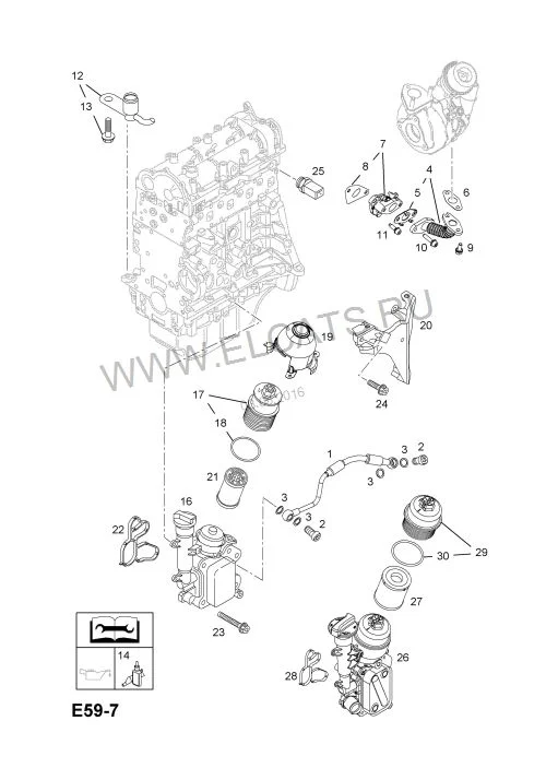 На ней нет датчика масляного. Ваш датчик давления масла находится на ГБЦ, на рисунке позиция № 25. Проверьте, на месте ли фишка подключения и в порядке ли провода.
