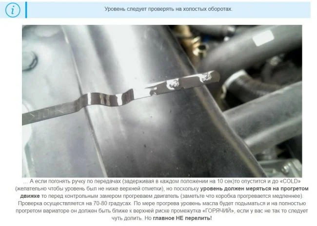 Должен ли уровень масла в вариаторе на горячем двигателе доходить до отметки HOT?