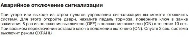Машину брал в салоне с подарочной DaVINCI-PHI-380. Уже стояло. А теперь дети «заиграли» рабочий брелок, а его более навороченный «собрат» изначально не заряжался. В мануале к системе имеется алгоритм аварийного отключения. Двери, тормоз, ключ зажигания. Не отключает. Гудит сирена, но машина заводится и едет.