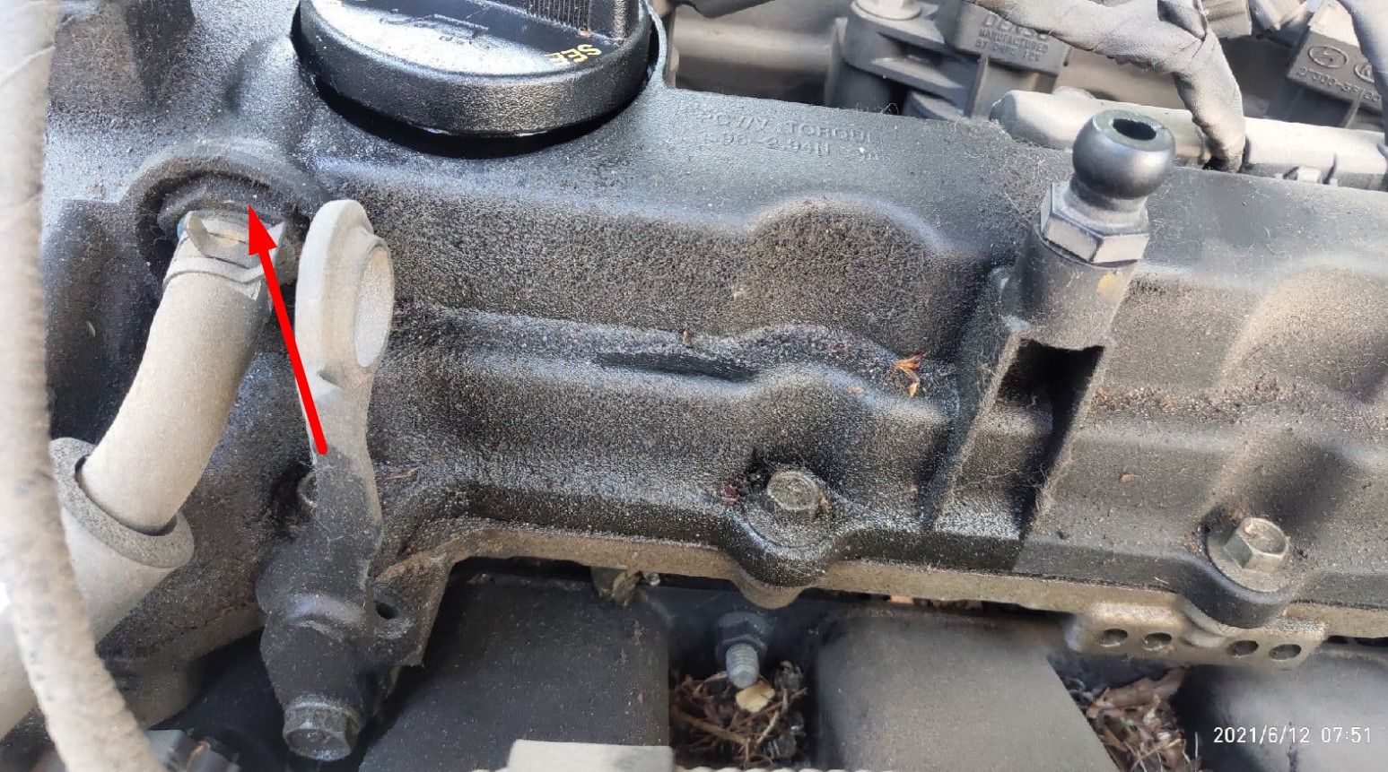 " Снял пластик с двигателя и обнаружил следующее(на фото), может ли из-за этого пропадать антифриз???" — это моторное масло (не антифриз), попробуйте почистить клапан вентиляции картерных газов. Ниже на фото и схеме. Еще может протекать масло через прокладку клапанной крышки.