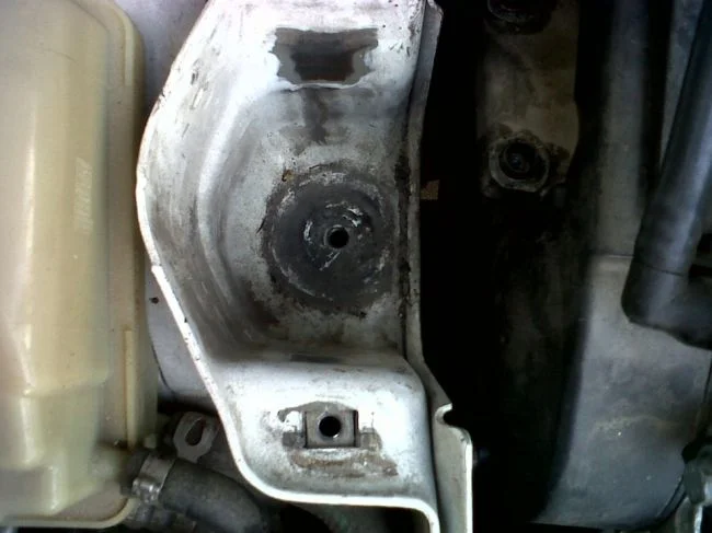 Здравствуйте. Помогите пожалуйста. При замене правой верхней подушки двигателя обнаружил что посадочное место для подушки сгнило и частично отвалилось. Хочу обратно все приварить сваркой, но не могу совместить все оставшиеся части. Хотелось бы найти фото этого посадочного места.