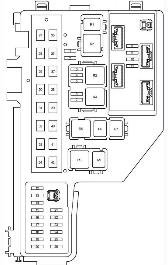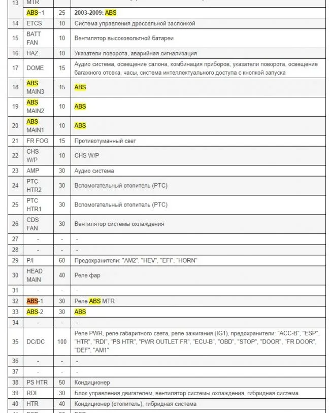 Проверьте предохранители под капотом помеченные желтым ниже.
