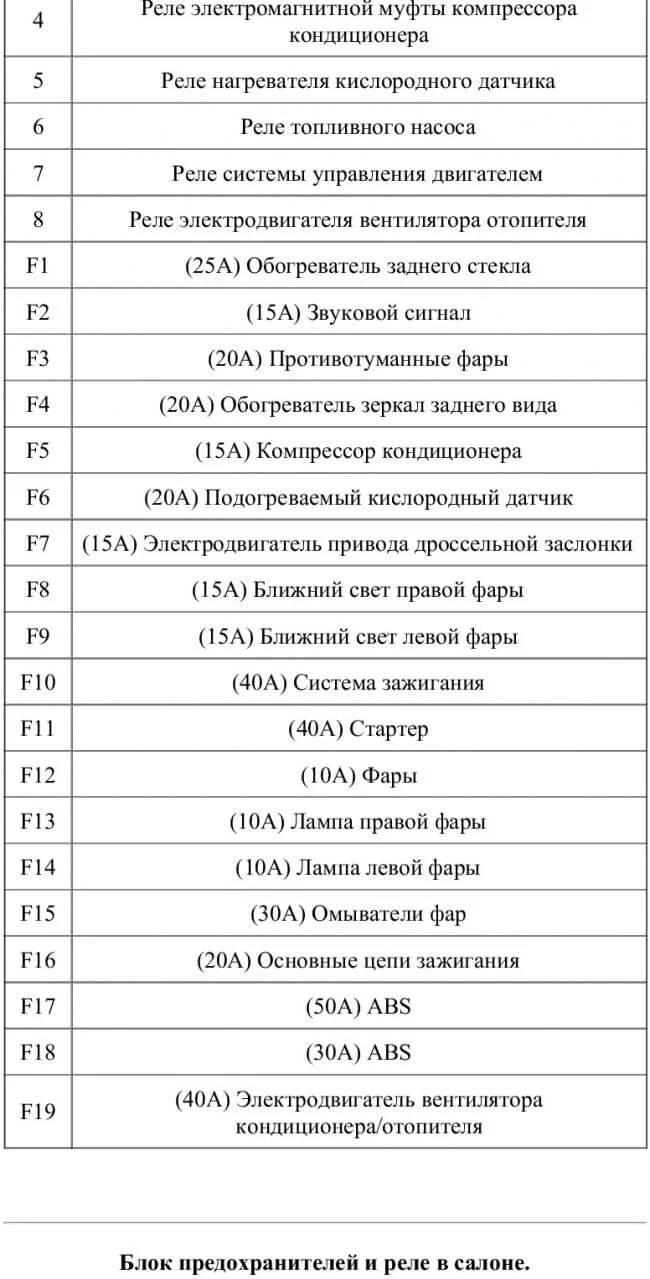Подскажите плиз, раскладку предохранителей салона на русском языке