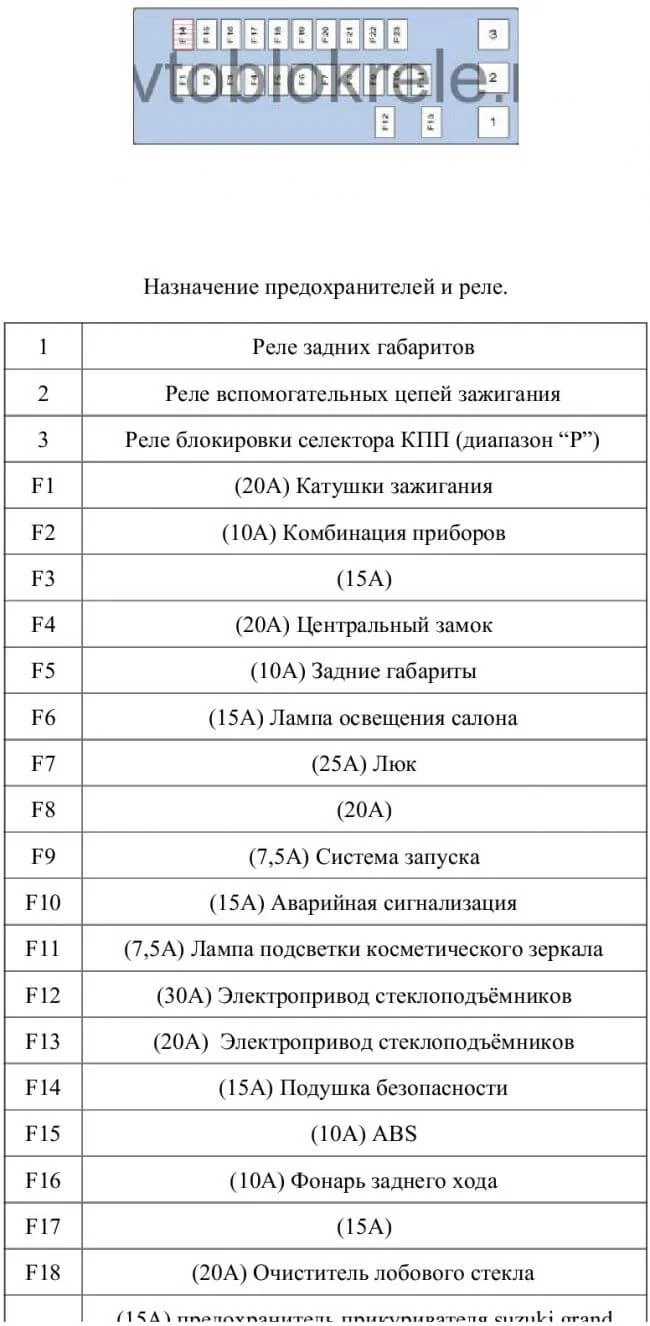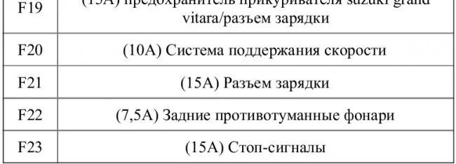 Какие предохранители в салонном блоке Сузуки Гранд Витара?