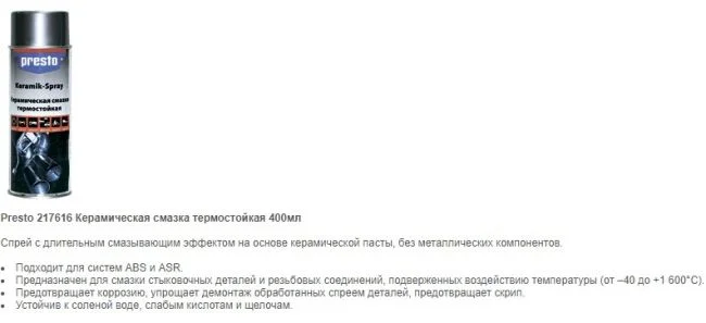 Можно использовать для смазки суппорта Presto Keramik-Spray?