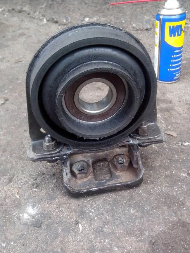 Резина это демпфер и она имеет ход по своей задаче, а вот при проверке смотрите на обоймы самого подшипника. Можно поднять заднее колесо, завестись, включить передачу, залезть под машину или подъемник и послушать его.