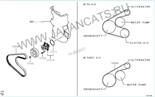 Роликов у ремня генератора нет, прикладываю схему, задействованы генератор, помпа, шкив коленвала, шкив компрессора кондиционера. Ремень натягивается при помощи сдвигания генератора. Напишите вин номер для перепроверки.